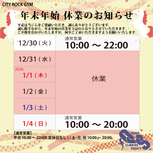 誠に勝手ながら、年末年始の営業を下記のとおりとさせていただきます。