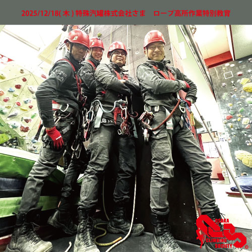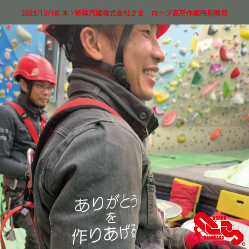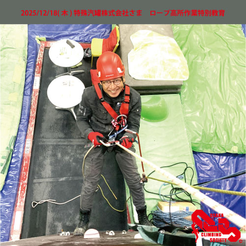 12/18(木) ロープ高所作業特別教育 2025.12.20 NEW #ロープ高所作業特別教育 この日は、全国の産業インフラを支える特殊汽罐株式会社さまのご受講♪ ユニフォームにプリントされた企業理念「ありがとうを作りあげる」が素敵です! みなさま和気あいあいで楽しい1日でした!