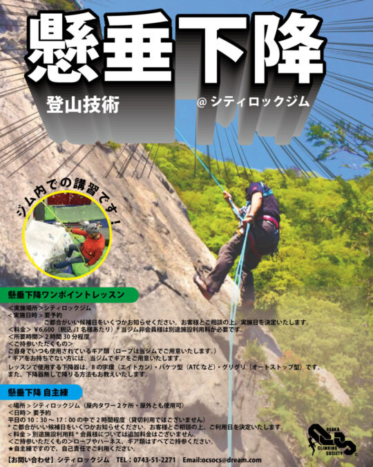 シティロックジムでは、登山技術の懸垂下降のレッスンも行っています!